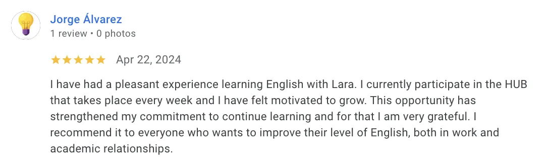 The better effort you put in, the faster you will see results. This is how HUB members grow their confidence with speaking at work, whether they work remotely or live in an English-speaking country.